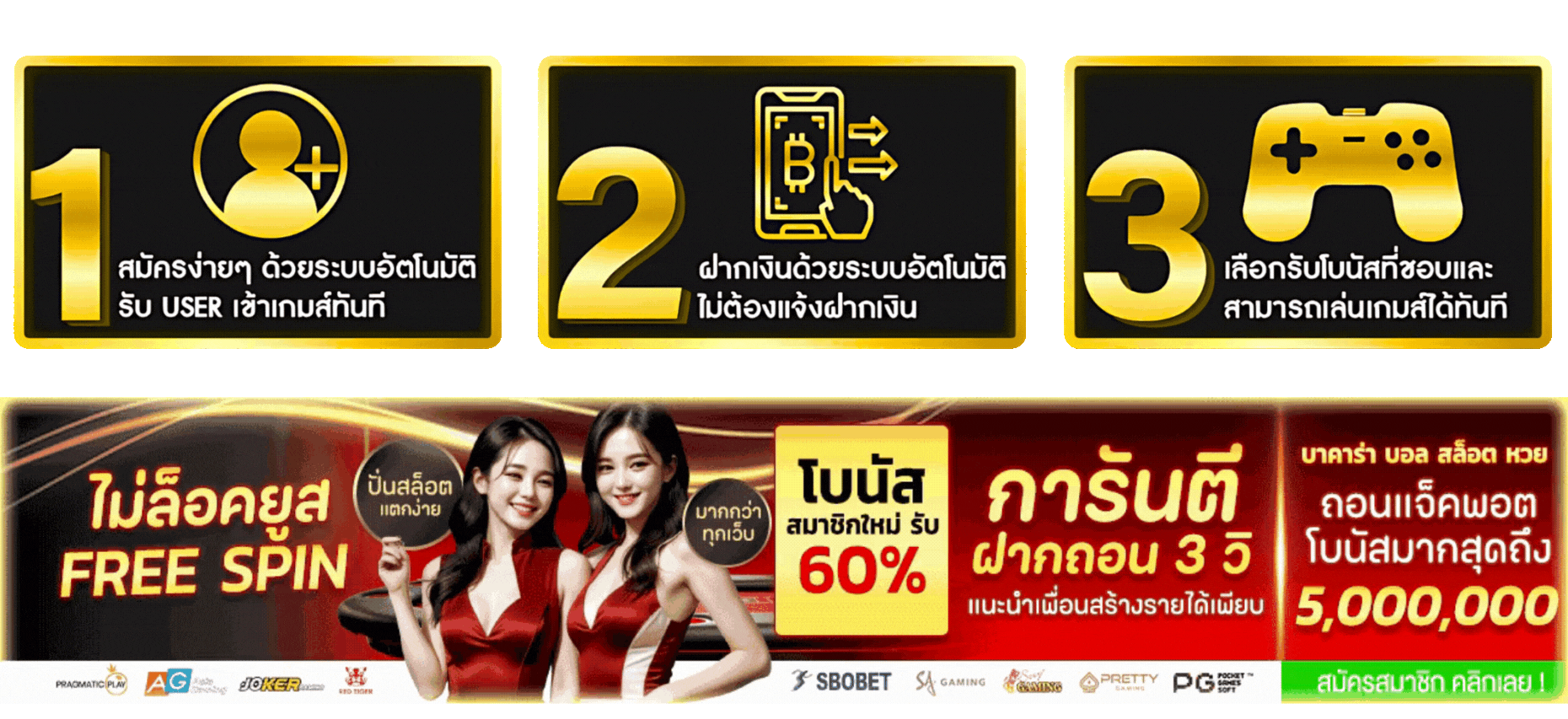 ตอบ : เกมสล็อตออนไลน์ถือเป็นบริการที่ได้รับความนิยมสูงสุด เนื่องจากมีการรวบรวมเกมที่มีค่า RTP (Return to Player) สูงและฟีเจอร์โบนัสที่แตกง่าย นอกจากนี้ยังมีบริการคาสิโนสด เช่น บาคาร่า และรูเล็ต ที่ถ่ายทอดสดด้วยความคมชัดระดับ Full HD ส่งตรงจากคาสิโนจริง